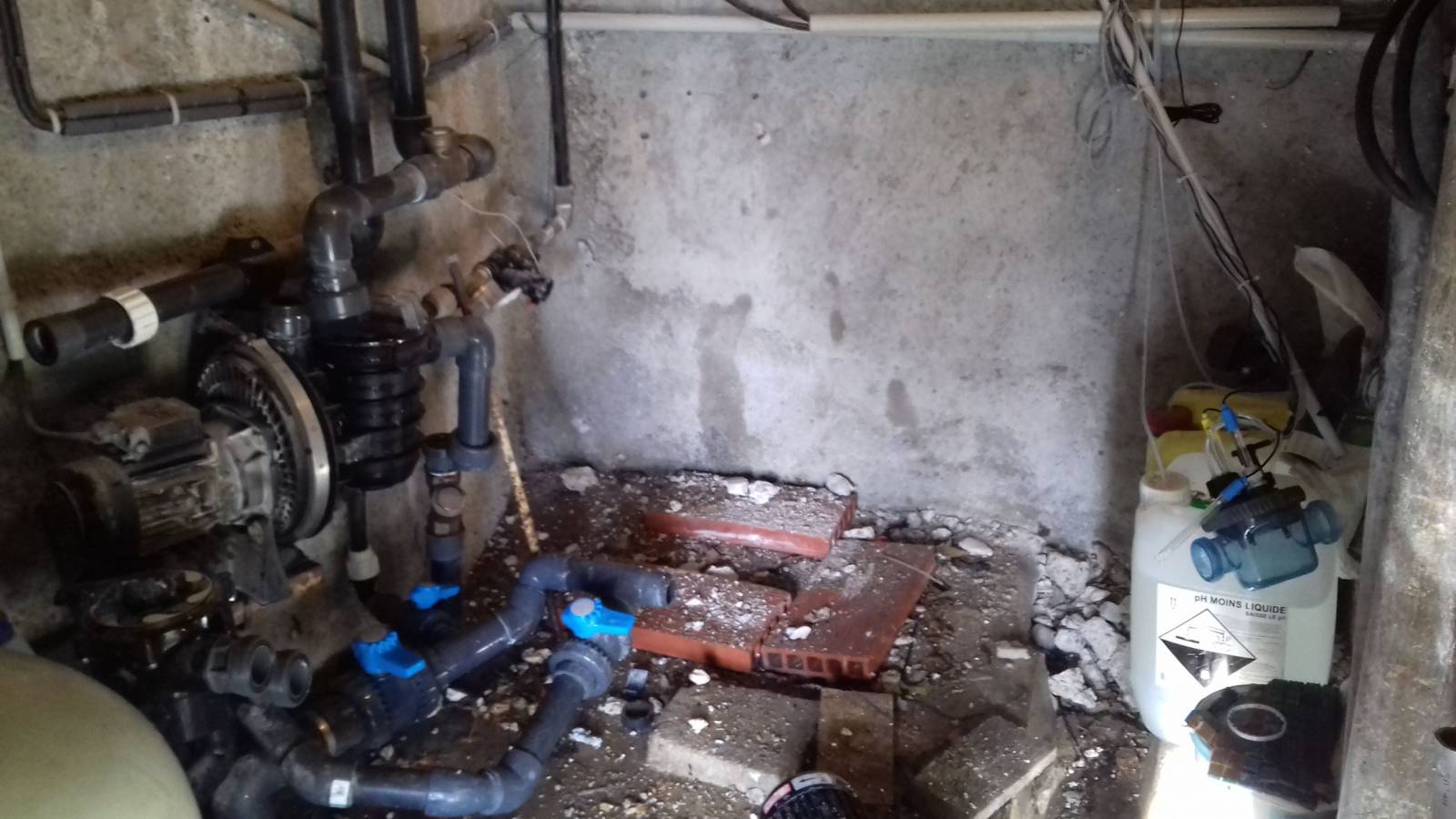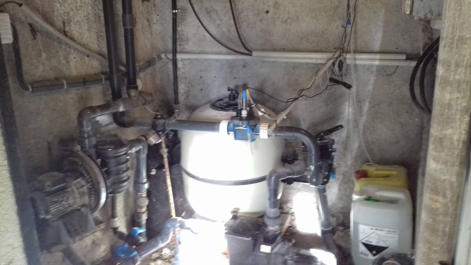 La SASU DPMS David Piscine Multi Services vous propose de faire une étude de votre installation piscine afin de déterminer si votre installation existante est suffisante pour le volume de votre piscine. Parfois cela révèle quelques surprises et notamment dans ce cas précis il y avait une installation en place pour une piscine de 65 M3 alors que la piscine existante fait 90 M3! Il a fallut changer la pompe ainsi que le filtre a sable. Une chose en entrainant une autre le nouveau filtre a sable étant plus large que la porte du local technique il a fallut aussi cassé partiellement l’entrée du local technique pour le faire entré. Mais bon, pas de problème, la SASU DPMS réalise fréquemment ce type d’intervention.