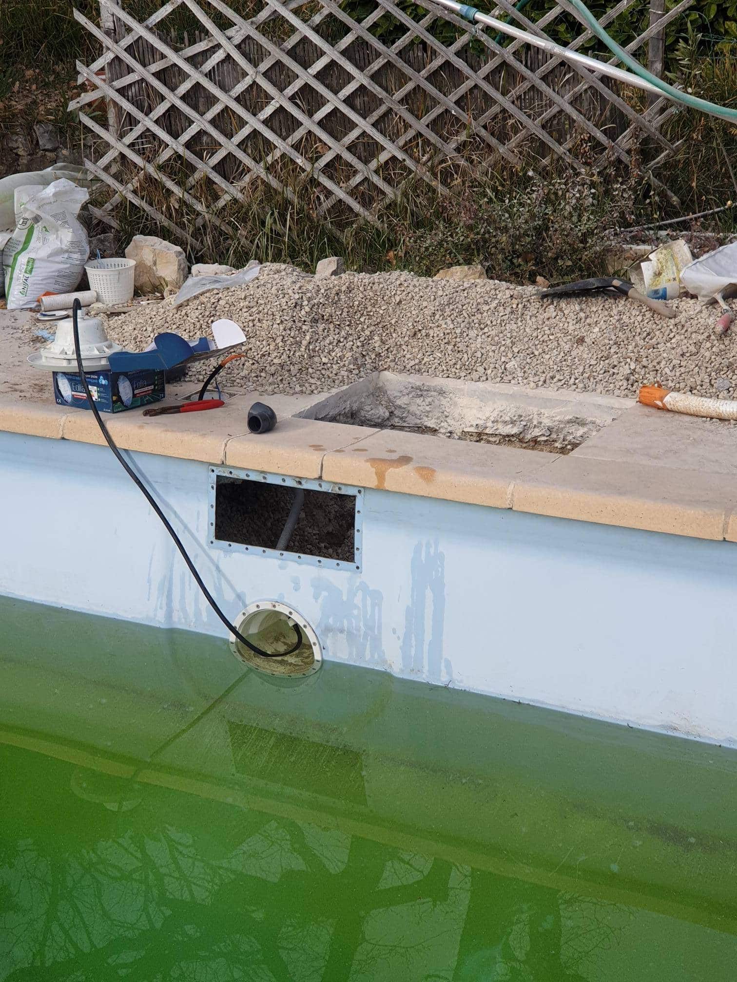 Le plus généralement fendu par la pression du béton qui l’entoure, ou bien encore fissuré dans le fond du a une pression exercée sur la tuyauterie qui par extension créer un arrachement de la jonction skimmer/tuyauterie, le skimmer défectueux entraine une fuite d’eau dans votre piscine , l’eau s’infiltrant dans les fentes et fissures pour enfin quitter le réseau fermé de votre piscine.